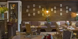 Der gemütliche Aufenthaltsraum im Stil einer Berghütte bietet beste Voraussetzungen sich nach einem Ausflug in der faszinierenden Bergwelt zu entspannen.